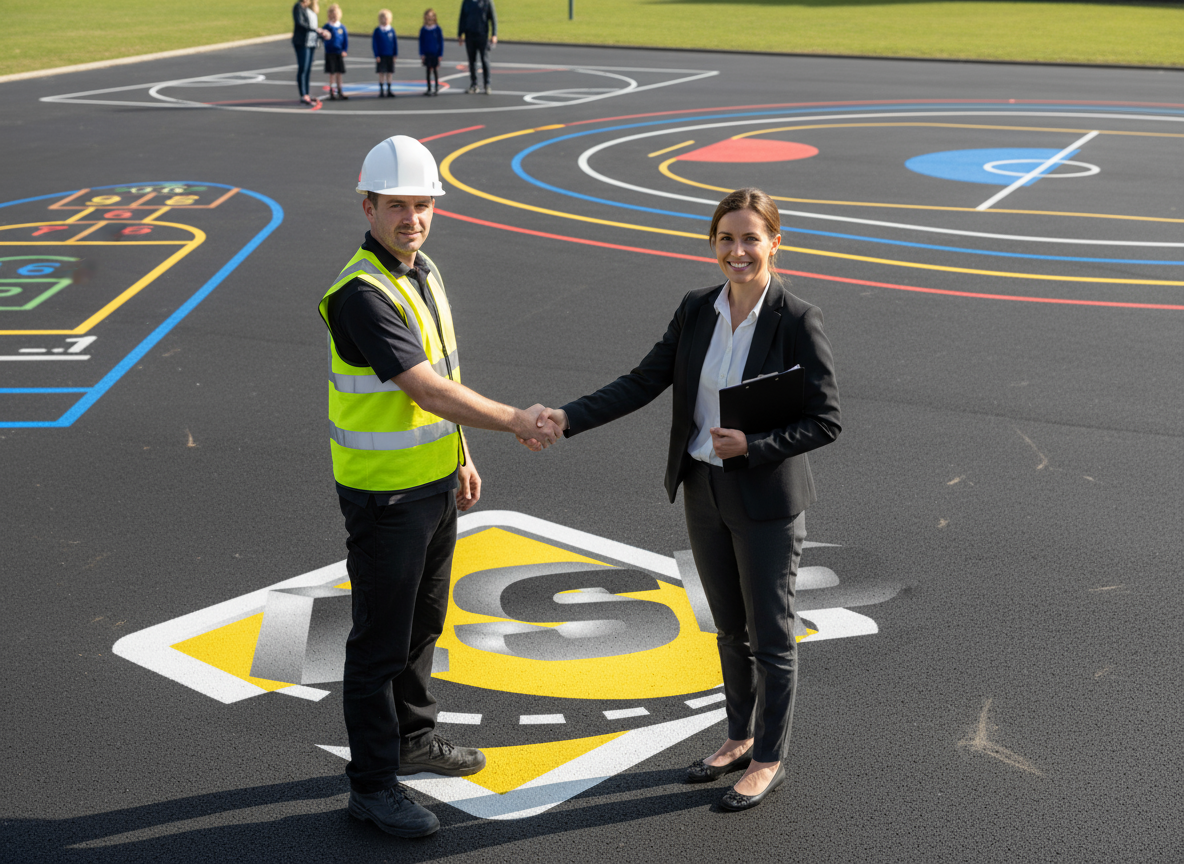 Nous conseillons les mairies, les directions d’écoles et les associations sportives pour organiser la pratique, optimiser les circulations et planifier les interventions au bon moment (périodes creuses, vacances scolaires). Pour le marquage au sol pour école, les jeux peints, les zones d’attente et les parcours pédagogiques sont conçus avec des teintes adaptées et une lisibilité immédiate pour les enfants.